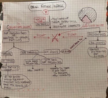 Consider an individual (male/female) is next to die (X) - being father/mother of recognised sons/daughters and not’s.